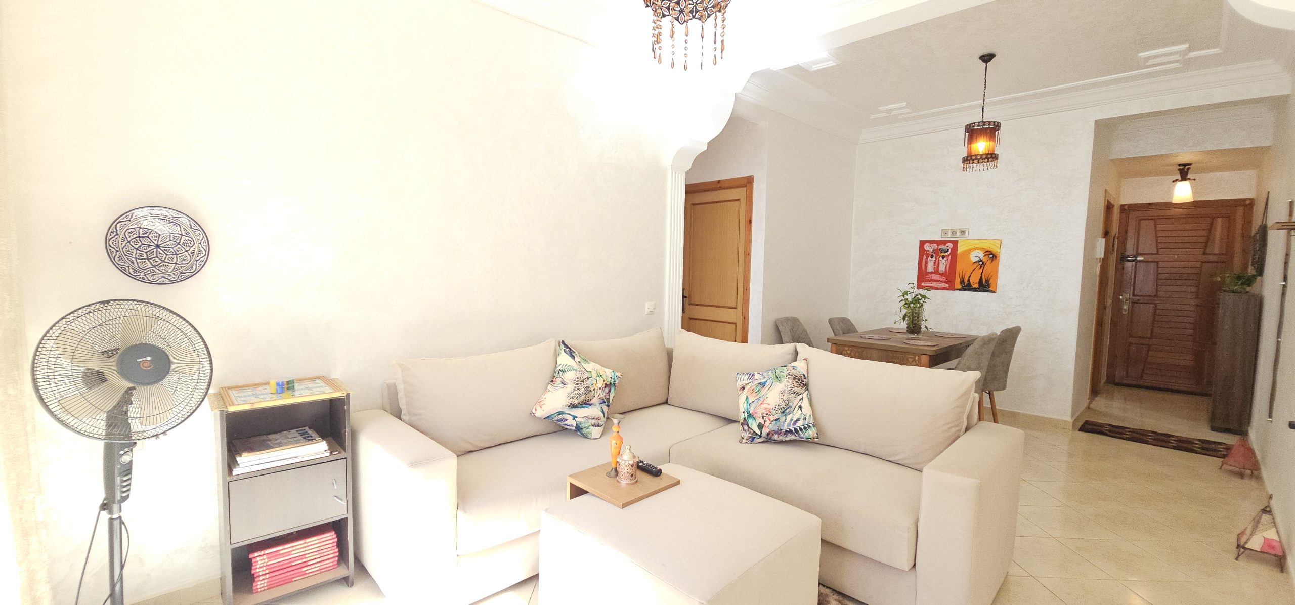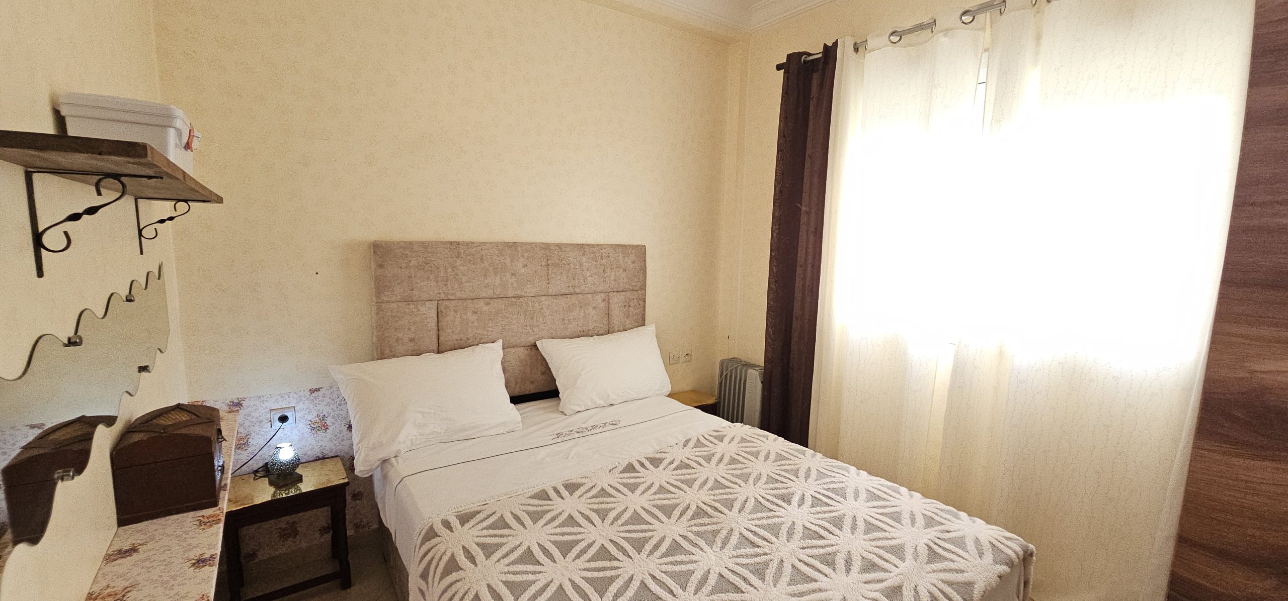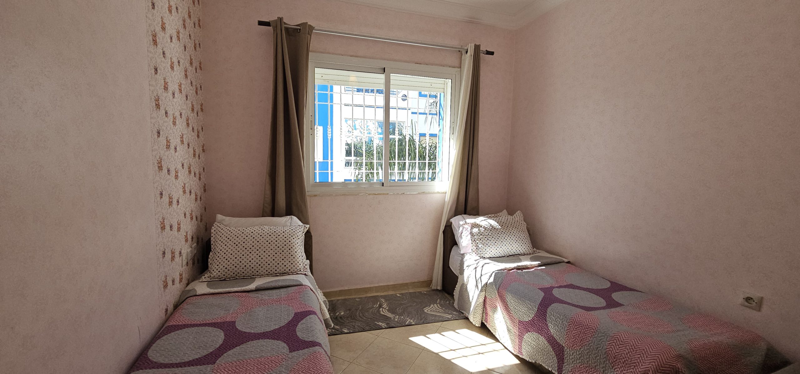 Stay in the heart of Martil in this bright and comfortable 2-bedroom apartment with a private balcony and relaxing garden view. Located in Martil center, this space is perfect for families looking for a peaceful stay just minutes from beach, cafés, and restaurants.