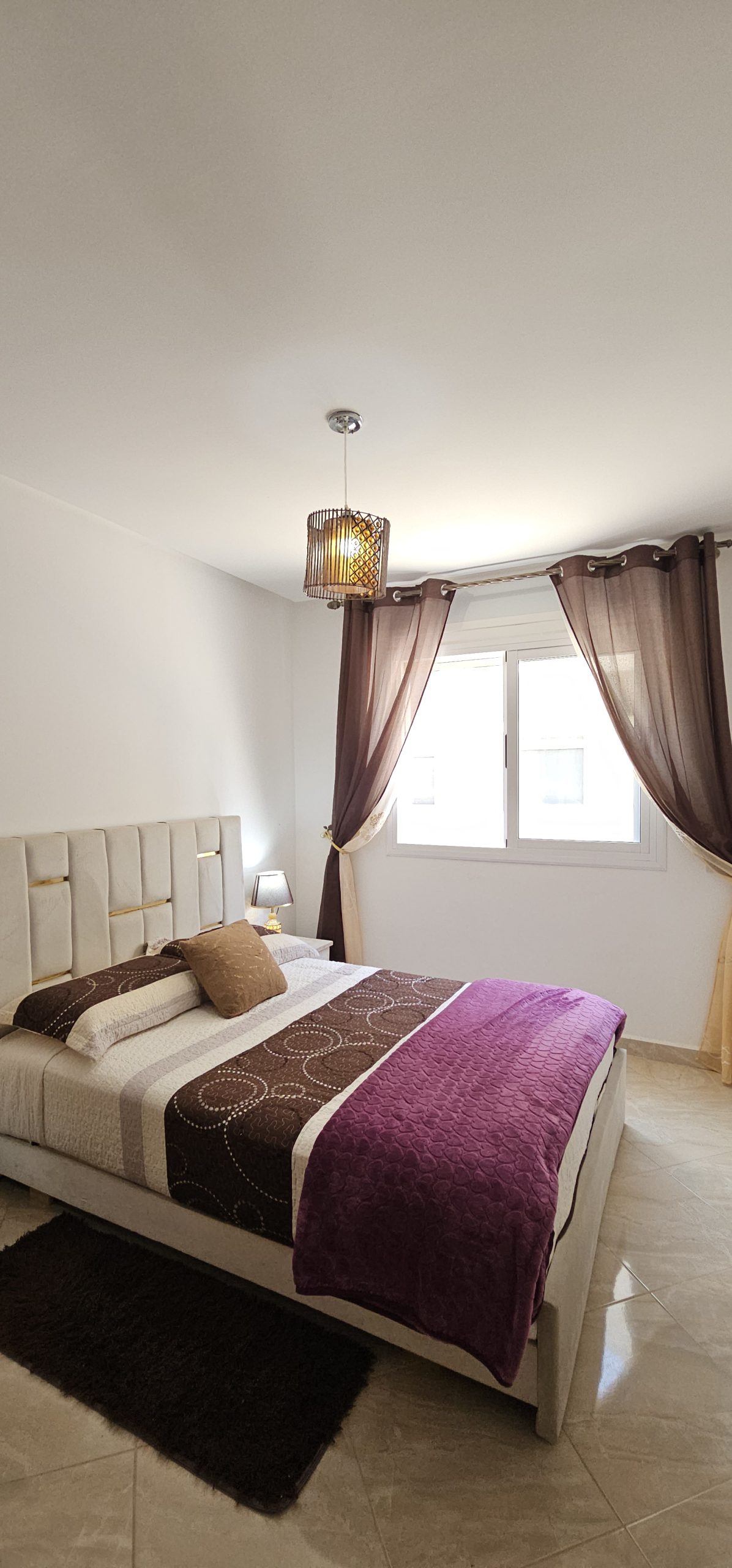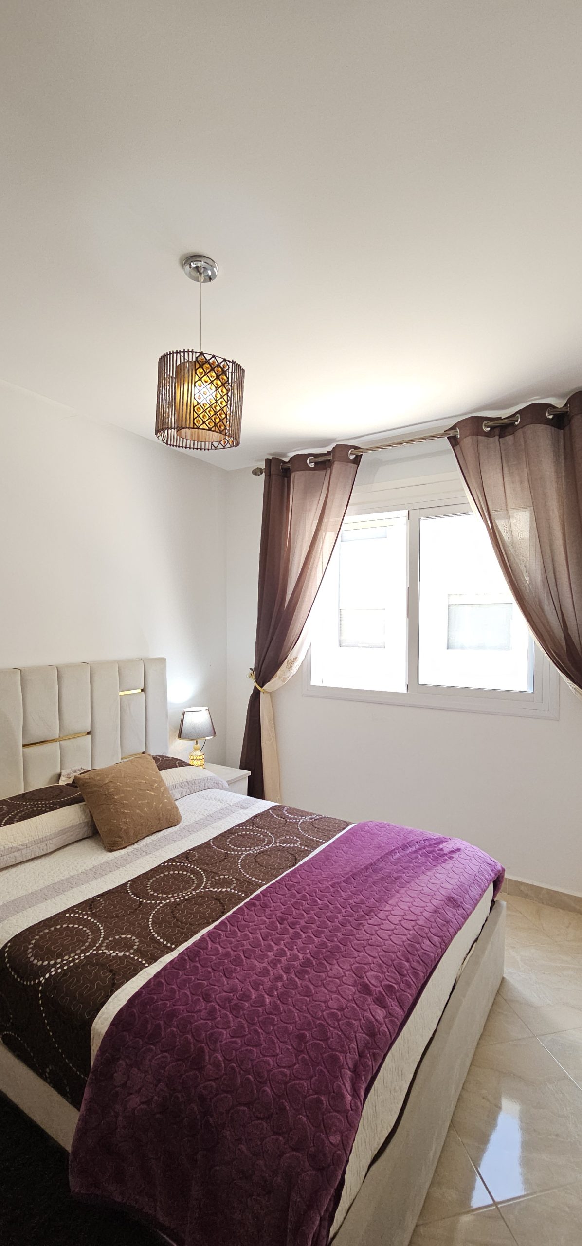 Experience a peaceful getaway in this modern 1st-floor apartment (with elevator) in Martil. Perfectly located 5 mins from the beach and 7 mins from Cabo Negro and IKEA, you are steps away from BIM, Kazyon, and local markets.
